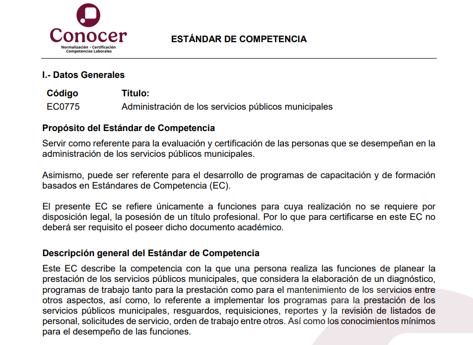 Certifícate en el Estándar EC0775 – Administración de los Servicios Públicos Municipales